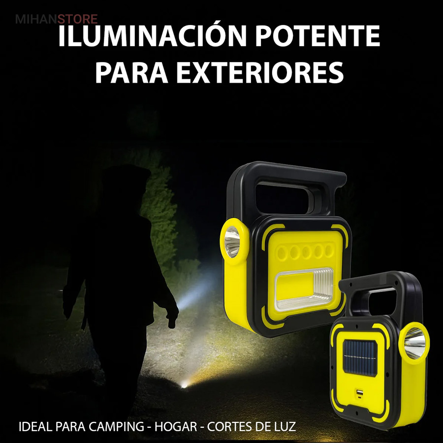 یک وسیله با چندکارایی جالب می باشد. جنس بدنه چراغ کار از ABS و مقاوم در برابر ضربه می باشد. چراغ و پروژکتور اضطراری دارای پاوربانک دارای 4 حالت نوردهی که شامل: چراغ قوه سفید و چراغ قوه آفتابی با  نور زرد و چراغ جانبی قوی COB شش چراغه با نور  قوی و چراغ جانبی کوچک میباشد. چراغ کار چند کاره دارای ویژگی هایی چون: دست گیره، قابلیت شارژ با برق شهری و نور خورشید، و خروجی USB برای شارژ موبایل می باشد.
