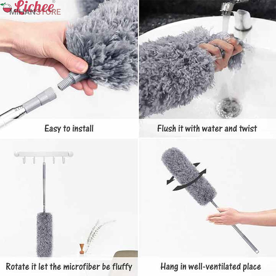 گردگیر تاشوی دسته بلند جهت نظافت و گردگیری و غبار روبی فضاهای دور از دسترس نظیر روی کابینت ها ، کنج سقف ها ، روی کمدها ،سطوح لوستر و چراغهای سقفی ، داخل آرک نورپردازی های مخفی و نظایر آن دارای کاربرد بوده و بخوبی در تمیزی محیط به شما کمک میکند . این محصول دارای دسته تاشو از جنس استیل بوده که بصورت تلسکوپی براحتی داخل خود جمع میشود و در کمترین فضای ممکن جای میگیرد .